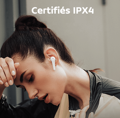 Les écouteurs sont certifiés IPX4 résistant à l’eau et à la sueur. Ainsi vous pouvez aller transpirer en pratiquant votre sport préféré tout en écoutant votre musique. Ayez toujours de la musique pour rythmer votre journée.