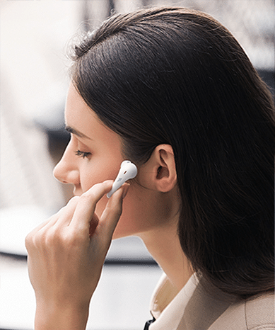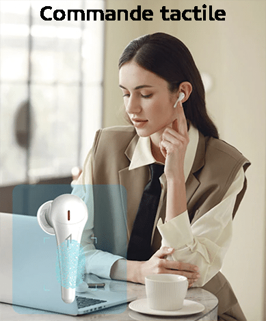Avec la commande tactile, vous pouvez contrôler et personnaliser vos écouteurs très facilement. La fonction ANC est activée par défaut, et il suffit de pincer la tige de l’écouteur pour défiler les différents modes de réduction de bruit. Pour répondre ou raccrocher à un appel, il suffit d’appuyer 2 fois, alors que pour activer l’assistant vocal, il faut appuyer 3 fois.
