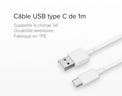 Commençons par le chargeur USB 27W. Il permet d’alimenter le chargeur sans fil mais peut également recharger les téléphones jusqu’à 27W. Il est compatible avec le protocole Qualcomm QC3.0. Il dispose de 10 protections afin d’éviter tout risque électrique (protection contre les surtensions, surintensités, surchauffe, …). Le câble USB-C mesure 1m et supporte la charge 3A. il est conçu en TPE (élastomère thermoplastique) afin de le rendre plus durable.