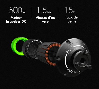 Le moteur de moyeu sans balai de 500 watts est conçu et développé par le laboratoire Silicon Valley Laboratory aux États-Unis. Il utilise une transmission unique avec une puissance d’entrée de 500 watts et une vitesse maximale de plus de 24km/h. Une forte pente n’est pas un problème (jusqu’à 15%). La puce de commande intelligente intégrée assure une sortie de puissance stable et présente les avantages d’un temps de réponse court, d’un faible bruit et d’une maintenance réduite.