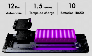 La durée d’utilisation du skate est de 12km grâce à la technologie de batterie lithium-ion Samsung 18650. La puissance de sortie est stable. Également, la planche intègre un système de gestion de batterie intelligent BMS capable de surveiller en temps réel l’état de la batterie, offrant une protection, vous permettant de jouer plus longtemps et de rouler plus longtemps.