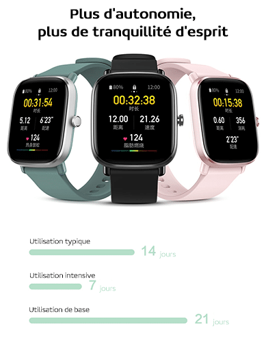 La montre dispose de 246mAh proposant ainsi une autonomie jusqu’à 14jours en utilisation normale ! Débarrassez-vous de l’anxiété du manque de batterie…