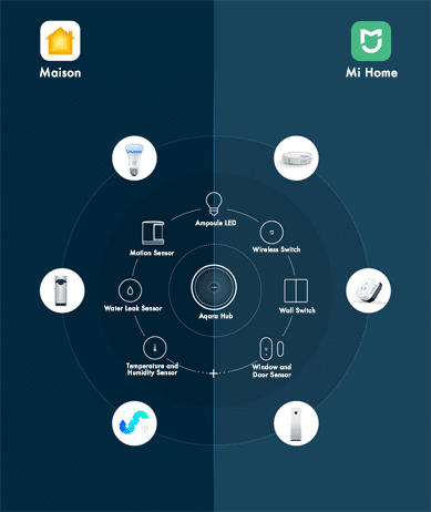 La grande nouveauté de cette version par rapport à sa sœur de chez Xiaomi est la compatibilité avec Home Kit d’Apple. Il est ainsi possible de contrôler la passerelle et les différents appareils connectés à tout moment et de n’importe où, directement sur l’application « Maison » sur iOS. La passerelle et les capteurs sont même vendu en Apple Store en Chine signe d’une collaboration entre Aqara et Apple. Grâce à cette compatibilité, Siri peut contrôler tous vos accessoires à la voix.