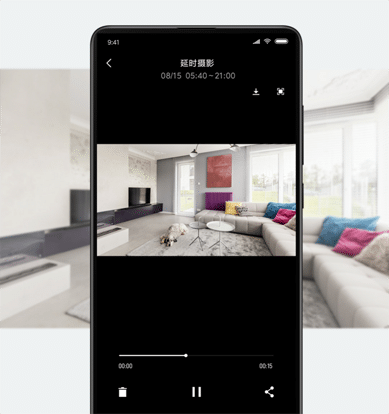 Contactez vos proches grâce à la fonction d’appels vocaux bidirectionnels. Cette fonction est facile à prendre en mains. Ouvrez Mi Home pour parler à votre famille à tout moment et de n’importe où. La communication est facile et fluide. Une fonction time-lapse est intégrée afin d’enregistrer vos bons moments dans une vidéo de 15 secondes.