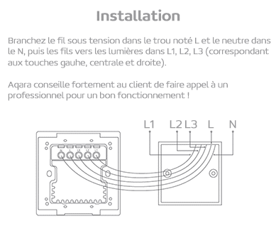 Attention, l’installation nécessite une ligne neutre dans la boîte d’encastrement. De plus pour son fonctionnement, il nécessite de détenir une passerelle Zigbee 3.0 comme la Aqara Hub M2 ou la Aqara Hub M1S.