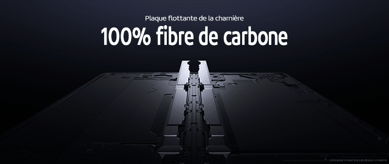 Qu’est-ce qu’une « architecture full carbone » ? L’objectif est de réaliser des avancées matérielles dans les trois composants lourds du téléphone : la charnière, l’écran et le cadre central. L’équipe d’ingénierie R&D de Xiaomi a dépassé la norme et a utilisé des matériaux 100 % en fibre de carbone pour la plaque flottante de la charnière, la doublure de support d’écran et le compartiment de batterie, la superficie totale atteint 33 552mm². Cette avancée fait également du Xiaomi Mix Fold 4 le téléphone pliant avec la plus forte teneur en fibre de carbone du marché.