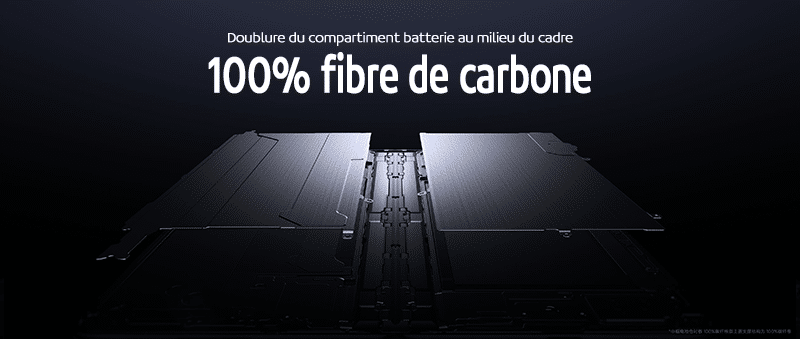 L’innovation du compartiment batterie au milieu du cadre est également étonnante. Grâce à une analyse précise et à une conception de simulation, les ingénieurs ont redessiné la plus grande zone de compartiment de batterie remplaçable sur le cadre central. La surface de la doublure du compartiment de batterie du cadre central, composée à 100 % de fibre de carbone, atteint également 11 568,13 mm², représentant 50 % de toute la surface du cadre central. Par rapport à l’alliage d’aluminium 6M42 d’origine, le cadre central en fibre de carbone améliore la résistance aux chocs de 300 %, tout en permettant une énorme réduction de poids.