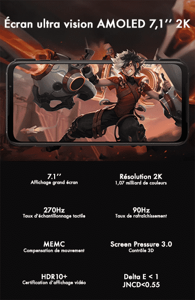 Le BlackShark 3 Pro est équipé d’un écran ultra vision de 7,1 » AMOLED avec une résolution 2K avec 1,07 milliard de couleurs… Le taux d’échantillonnage de l’écran est de 270Hz et le taux de rafraîchissement est de 90Hz. Il est optimisé pour le jeu avec un temps de réponse au toucher simple doigt de 24ms et multi doigts de 28ms. Le Trueview Display permet quant à lui un affichage précis et permet de restaurer les vraies couleurs à l’écran. De plus il dispose d’un affichage d’image à plage dynamique élevée HDR10+ et une technologie de gestion des normes de couleur professionnelle bien supérieure à la norme de l’industrie (JNCD<0,55 et △E<1).