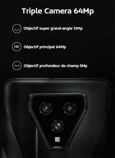 - Capteurs photos arrière : 64Mpx + 13Mpx + 5Mpx