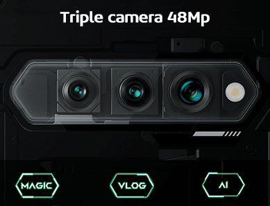 BlackShark a déconstruit son design en X couche par couche pour le présenter de manière plus contemporaine à travers l’expression de la lumière et des textures d’ombre. Le dos du téléphone est disponible en 2 couleurs (Black ou Foggy White) et accueille la triple caméra 48Mp :