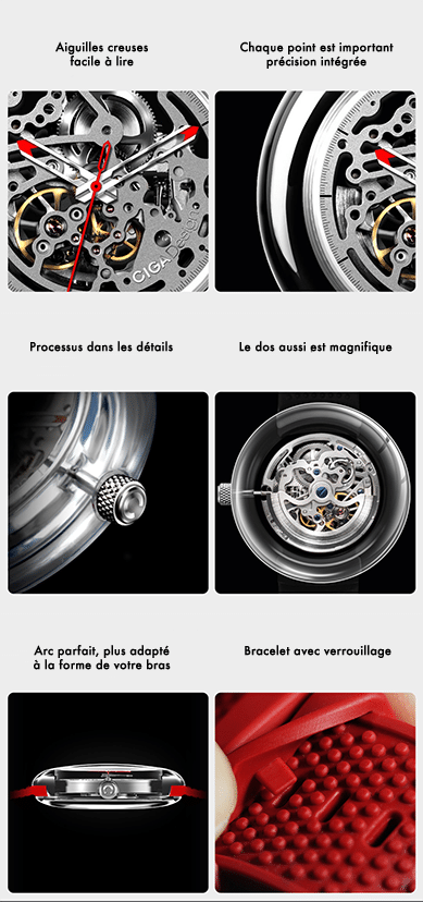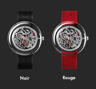 Les hommes préfèrent souvent les montre à quartz qui sont moins épaisses mais CIGA Design a surmonté ce problème et la montre atteint que 39 grammes ! Le bracelet est en silicone avec 15 trous lui permettant de correspondre à différentes tailles de poignets. Disponible en 2 couleurs, le noir est calme et discret alors que le rouge est accrocheur.
