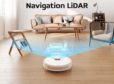 Le robot est équipé de la navigation LiDAR hautes performances permettant d’obtenir une cartographie précise de votre domicile. Les pièces sont scannées rapidement avec un rayon d’environ 8m. Il utilise la navigation LiDAR et un algorithme de SLAM pour la cartographie dynamique et la planification intelligente des trajectoires.
