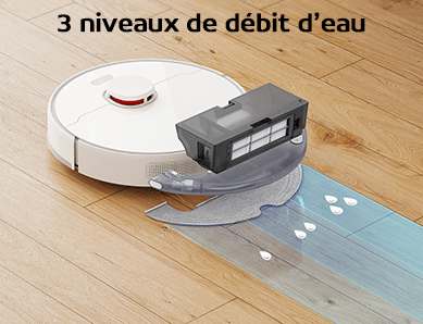 Le Dreame Bot D10 Plus est également équipé d’un système de nettoyage. Le débit d’eau est réglable pour laver vos sols comme vous le souhaitez en fonction de la saleté du sol ou du type de sol. Le réservoir d’eau est d’une capacité de 145ml et celui de poussière est de 400ml.