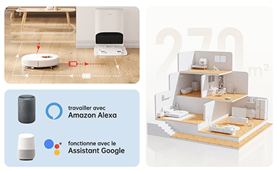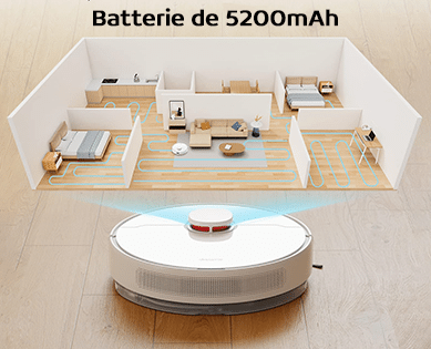 Une grosse autonomie est disponible grâce à ma batterie de grande capacité de 5200mAh. Avec une seule charge, le nettoyage peut aller jusqu’à 270m2. Il dispose également de la fonction de retour à la station si la batterie est trop faible pendant le nettoyage, avec chargement puis reprise à l’endroit où il s’était arrêté…