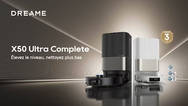 La progression de Dreame s’explique en grande partie par une stratégie d’innovation centrée sur les usages domestiques. Parmi les modèles récents, le Dreame X50 Ultra Complete se distingue par sa capacité à franchir des obstacles jusqu’à 6 cm et à circuler dans des espaces très étroits grâce aux technologies ProLeap et VersaLift. Le robot est également équipé de la brosse HyperStream DuoBrush conçue pour limiter l’emmêlement des cheveux, tandis que la station AceClean Dryboard automatise le lavage et le séchage des serpillières.