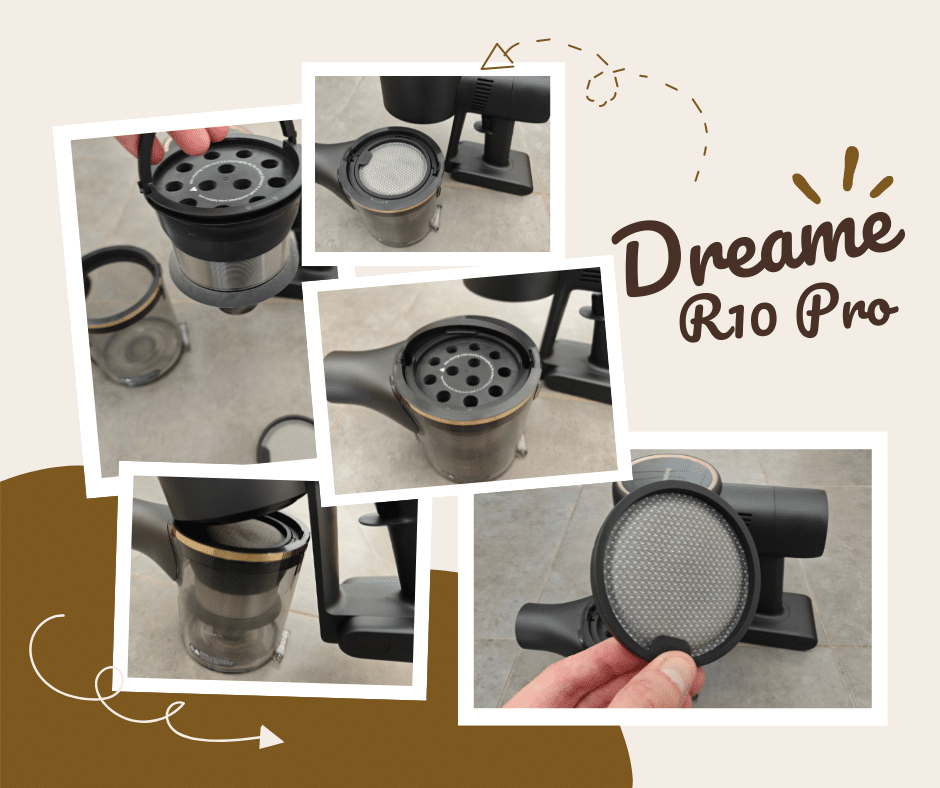 Oui le Dreame R10 Pro est un outil parfait pour nettoyer votre maison mais il faut le nettoyer ! Et l’entretien est très facile. Pour commencer, pour vider le bol de poussière, il suffit d’appuyer sur le bouton à l’avant du bol pour l’ouvrir au dessus d’une poubelle. Et pour le filtre, il suffit de retirer le bol grâce à l’interrupteur situé sous l’aspirateur pour le retirer. Le filtre est alors directement accessible ainsi que le système de filtration. Une fois nettoyé, il suffit de bien attendre au moins 24h que tout soit bien sec pour remonter et utiliser l’aspirateur.
