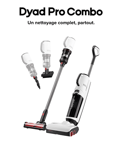 L’aspirateur nettoyeur utilise la technologie DyadPower® qui intègre plusieurs rouleaux tournant dans des directions opposées pour assurer un nettoyage parfais. Le Dyad Pro Combo dispose d’une puissance d’aspiration de 17 000Pa avec une pression constante de 20N qui assure un nettoyage en profondeur.
