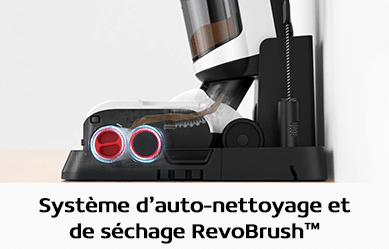 De retour après le nettoyage sur la base, l’aspirateur laveur est capable de s’autonettoyer avec un taux de 99% de la saleté éliminée des rouleaux. De plus, on retrouve un séchage à air chaud à 50°C ce qui assure un séchage complet évitant les odeurs désagréables.