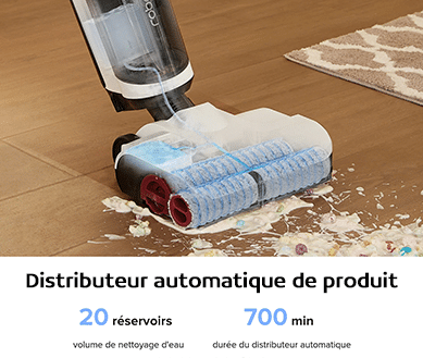 Comme sur le Dyad Pro, Roborock a intégré un système de distribution automatique de produit de nettoyage. La distribution est réalisée de manière adaptative en fonction de la saleté mais également réglable via l’application.