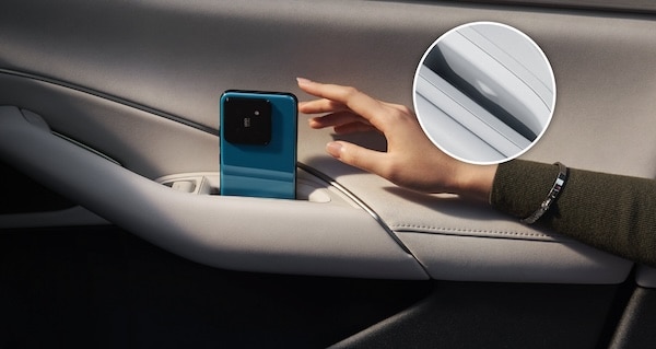 Il existe également deux emplacements de rangement pour téléphones derrière l’accoudoir central pour les passagers arrière. Ils sont proches du port de chargement et sont pratiques pour accéder et placer les téléphones.