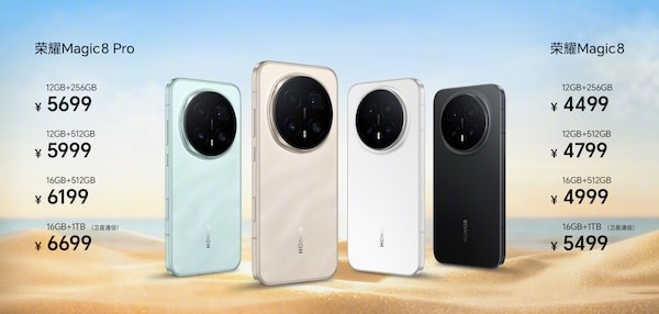 La série HONOR Magic8 est d’ores et déjà disponible en précommande en Chine dans plusieurs coloris élégants : Sunrise Gold, Sky Cyan, Black et Glacier White. Le HONOR Magic8 est proposé à partir de ¥4 499 (environ €585), tandis que le HONOR Magic8 Pro débute à ¥5 699 (environ €740). Les ventes officielles commenceront à partir du 15 octobre 2025, avant un déploiement international prévu au cours de l’année.