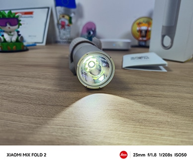 La lampe torche intègre une lumière principale très puissante ! Dans ce mode lumière principale, on retrouve 3 intensités disponibles de faible à 50 lumens, moyen à 300 lumens et fort à 1000 lumens. Elle est donc capable de vous éclairer en intensité forte à 210m de distance !