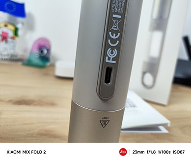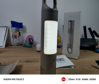 La lampe intègre une batterie lithium-ion de 3200mAh permettant d’obtenir une autonomie jusqu’à 65h. Elle est rechargeable via un port USB-C avec un temps de charge de 150min. La grosse batterie donne un produit avec un poids d’environ 146gr !