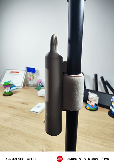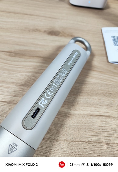 La lampe est très facile à utiliser. On peut la suspendre ou l’accrocher grâce au crochet extensible situé sur le dessus, ou l’attacher via la sangle anti-dérapante. La lampe intègre au niveau du port USB-C d’une bande magnétique qui permet de fixer cette sangle anti-dérapante et de protéger le port de charge.