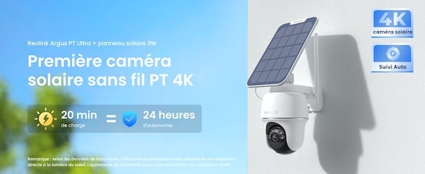 Pour sécuriser les extérieurs, la Reolink Argus PT Ultra accompagnée de son panneau solaire offre une grande liberté d’installation. Fonctionnant sur batterie avec recharge solaire, elle ne nécessite aucun câblage et peut être installée dans des zones difficiles d’accès.