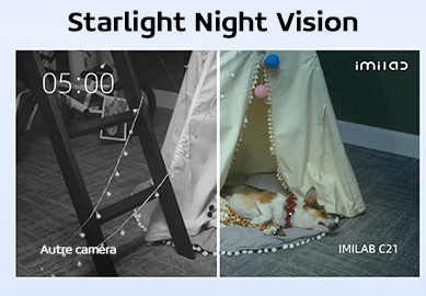 Mais la caméra proposée par Imilab est équipée d’un capteur de 4Mp avec une ouverture f/2,0 permettant de restituer une image claire et nette avec une vision nocturne. Avec le Starlight Night Vision, vous visualisez donc les images clairement à tout moment et même dans le noir !