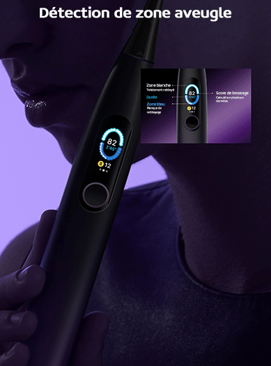 La brosse à dents intègre un gyroscope à 6 axes permettant de détecter les mouvements de brossage et génère des rapports en fonction de votre technique de brossage. Cela permet d’éviter les zones aveugles qui pourraient être oubliées.