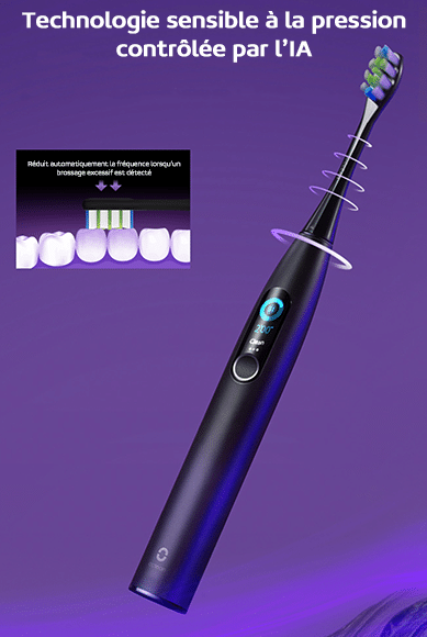 Oclean a développé une technologie sensible à la pression contrôlée par l’intelligence artificielle IA permettant moins de dommage, saignements ou inconfort dus au brossage.