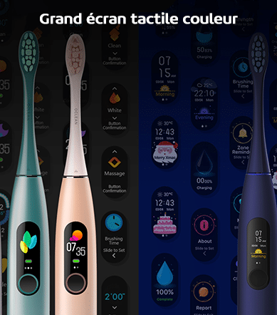 Oclean a surtout ajouté un grand écran tactile couleur permettant de visualiser toutes les informations dont vous avez besoin. Il n’est donc plus nécessaire d’ouvrir l’application pour les obtenir. Visualisez directement un aperçu du brossage, le pourcentage de batterie ou encore les paramètres du brossage.