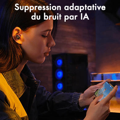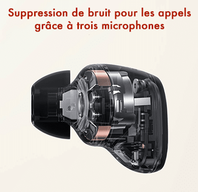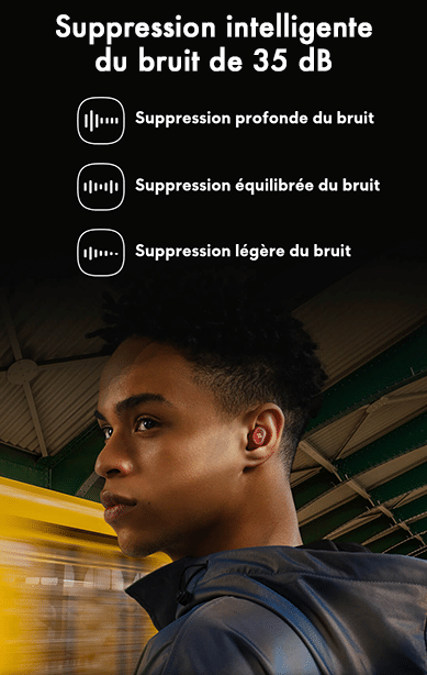 Les écouteurs disposent de 3 microphones combinés à l’algorithme de réduction de bruit lors d’appel permettant de capter avec précision la voix humaine tout en réduisant efficacement le bruit de fond. Les appels sont clairs et sans interférence dans un environnement bruyant.