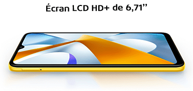 Le POCO C40 est équipé d’un écran LCD HD+ de 6,71’’. Cet écran utilise la technologie IPS, qui propose des blancs plus lumineux, des couleurs plus vives et de meilleurs angles de vision que les écrans TFT. Il offre une expérience visuelle époustouflante lorsque vous regardez des vidéos… L’écran est percé pour laisser place à la caméra selfie de 5Mp et est protégé par un verre Corning Gorilla Glass 3.