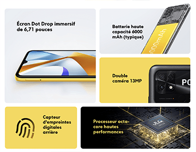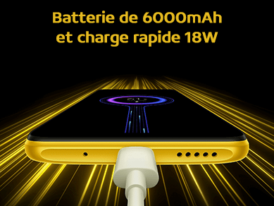 Le POCO C40 est doté d’une grande batterie de 6000 mAh offrant une autonomie ultra longue. Il sera possible de le recharger rapidement avec la charge rapide de 18W. Par contre, la marque a intégré à la boîte un chargeur 10W.
