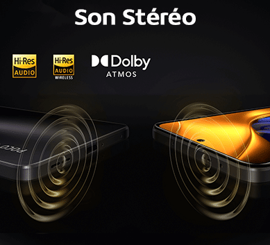 Dolby Atmos est une technologie sonore de haute qualité dérivée des salles de cinéma. Le smartphone dispose de deux haut-parleurs permettant de créer un son immersif. Le Poco F4 a obtenu la certification Hi-Res Audio et Hi-Res Audio Wireless. Il dispose du WiFi 6 et le Bluetooth 5.2. Le téléphone intègre en plus d’une puce NFC Multifonction, du GPS bi fréquence, un port USB-C et un capteur infrarouge.