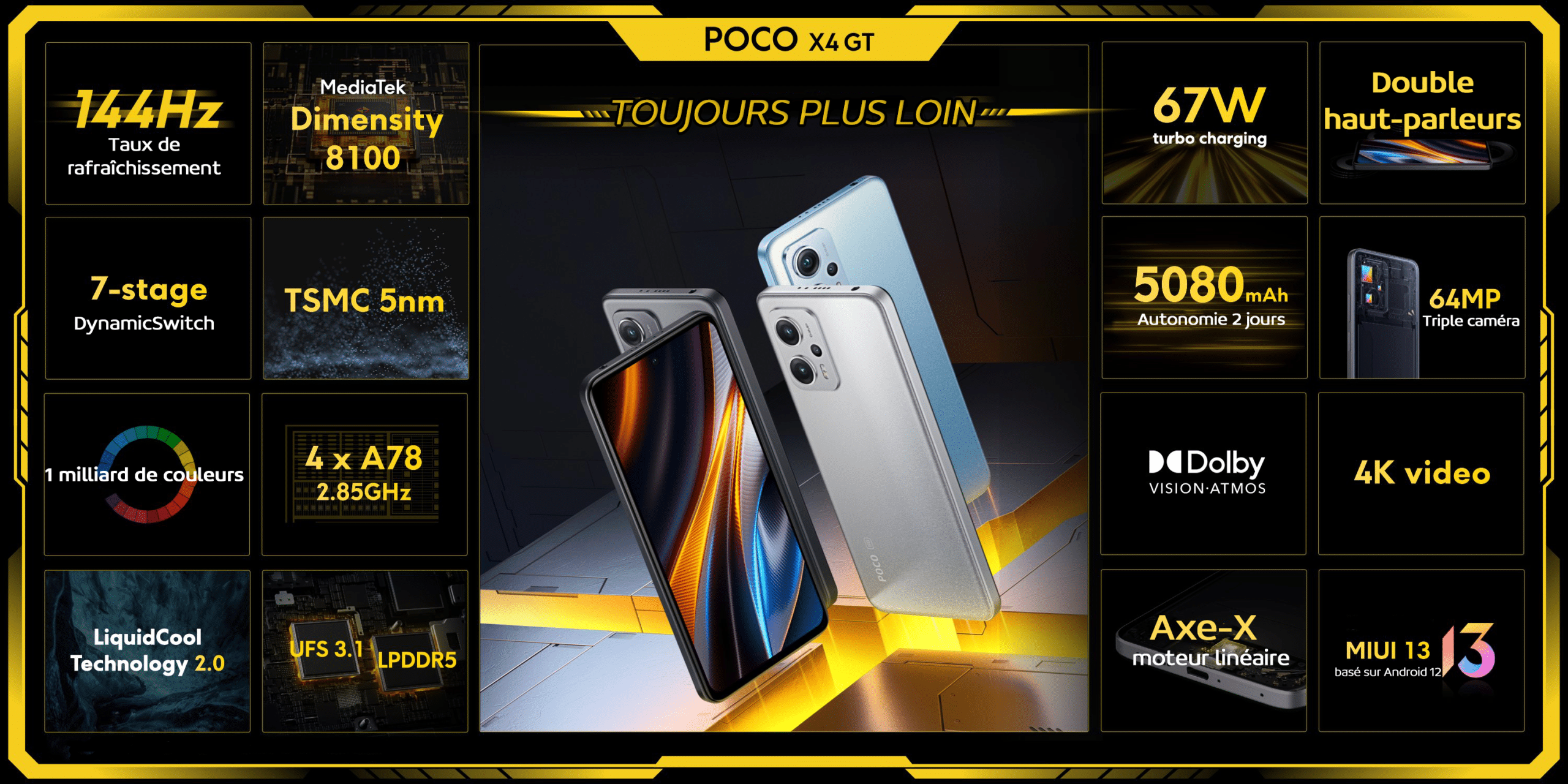 POCO a décidé de passer à la vitesse supérieure et de proposer un panel toujours plus fourni de smartphone afin que vous puissiez trouver le vôtre au meilleur prix… La marque propose des téléphones pour les gamers estampillés GT avec le F4 GT et ses boutons de jeux par exemple, mais également le tout nouveau POCO X4 GT qui amène toute la puissance nécessaire avec un écran magnifique de 144Hz… Découvrons donc le POCO X4 GT immédiatement dans cet article !