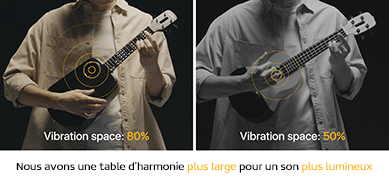 Par rapport à ses prédécesseurs, sa table d’harmonie est élargie passant les espaces de vibrations des notes de 50% à 80% désormais.