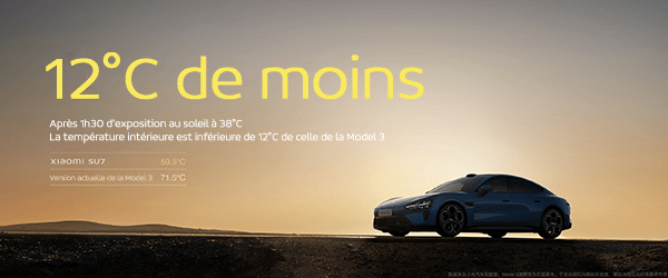 Les ingénieurs de Xiaomi ont effectué des tests en laboratoire. Après avoir été exposé au soleil à 38°C pendant 90 minutes, la température intérieure de la Xiaomi SU7 était inférieure de 12°C à celle de ses concurrents. Une telle capacité d’isolation thermique efficace empêche le véhicule d’être frappé par des vagues de chaleur dans l’habitacle après avoir été exposé au soleil en été. Associée à l’excellente climatisation, elle apporte une expérience plus confortable à tout le monde pendant l’été chaud.