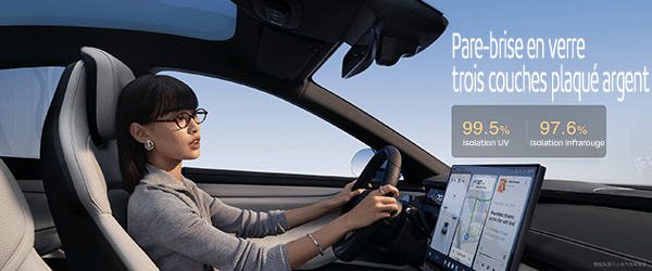 Xiaomi a constaté que le pare-brise avant est en réalité plus exposé au soleil. Ainsi, la marque a adopté un pare-brise avant argenté à trois couches, qui est également le seul parmi les berlines. Le pare-brise avant plaqué argent à trois couches a un taux d’isolation UV de 99,5 % et un taux d’isolation infrarouge de 97,6 %, permettant de réduire considérablement la température globale dans la voiture. Lorsque vous conduisez en été, vous n’avez plus besoin de transporter des équipements de protection solaire encombrants et votre confort est grandement amélioré.