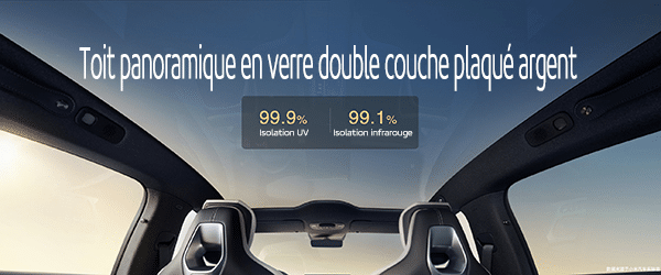 01 – Le toit panoramique est double couche d’argent, avec un taux d’isolation UV allant jusqu’à 99,9 %