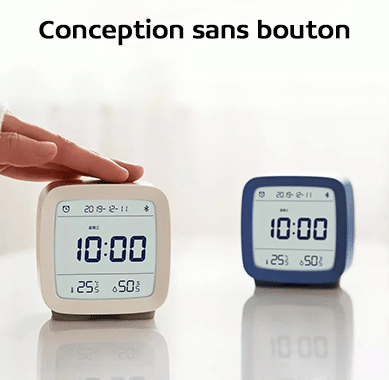 La marque n’a mis aucun bouton sur le réveil, mais les interactions sont possibles. Le socle sous le réveil fait office de bouton. Lorsque l’alarme sonne, il suffit de tapoter sur l’horloge pour la répéter et elle redonnera après 10min.