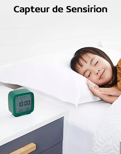 La température et l’humidité de la pièce sont affichées sur l’écran. La mesure est réalisée par un capteur Sensirion de haute sensibilité capable d’enregistrer les différents changements. Il est ainsi possible de configurer des automatisations avec d’autres appareils sur Xiaomi Home comme allumer le chauffage par exemple en fonction de la température détectée dans la pièce.