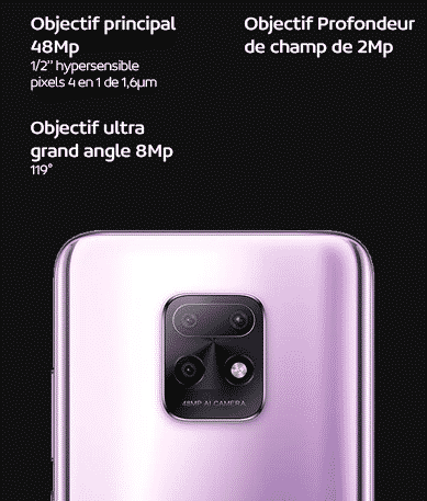- Objectif principal 48Mp (pixels 4 en 1 de 1,6μm, FOV 69°)