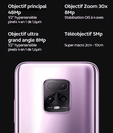 Avec l’intégration de Miui 12 et l’amélioration de l’application photo, il intègre de nouveaux filtres comme le Cyberpunk, Or Noir, ou encore Black Ice. Il est disponible en 4 couleurs (Peach White, Navy Blue, Night Purple et Gold Peach). De plus le téléphone prend en charge la certification IP53 résistance à la poussière et aux éclaboussures.