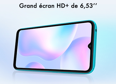 Redmi a fait le choix d’équiper son Redmi 9A d’un écran HD+ de 6.53’’ LCD IPS. Cet écran utilise la technologie IPS, qui propose des blancs plus lumineux, des couleurs plus vives et de meilleurs angles de vision que les écrans TFT. Le point négatif est malheureusement la consommation d’énergie du rétroéclairage qui est élevée. Il prend en charge la protection des yeux et a passé la certification TÜV Rheinland low blue light ! Affichage plein écran, une goutte dissimule cependant la caméra en face avant de 5 MP. Cette caméra permet de déverrouiller votre smartphone par reconnaissance faciale puisque ce téléphone est dépourvu de capteur d’empreinte.