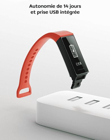 Disponible en 4 couleurs de bracelet dont Graphite Black, Vibrant Orange, Olive Green et Space Blue ! Les bracelets sont en TPU, et sont interchangeable ! En retirant le bas du bracelet, vous trouverez une prise USB directement rattachée au Redmi Band pour sa recharge. Elle intègre une batterie de LiPo de 130mAh permettant d’obtenir une autonomie de 14jours.