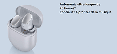Grâce à leurs puce basse consommation, les écouteurs offrent une très bonne autonomie pouvant aller jusqu’à 6 heures en une seule charge. Grâce à l’étui, cette durée de batterie pourra être étendue jusqu’à 28 heures. Ces données de batteries ont été réalisées avec l’option suppression de bruit désactivé et à 50% de leurs performances audio.