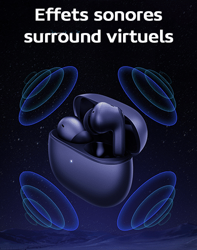 Les Redmi Buds 4 Pro sont les premiers écouteurs de la marque à prendre en charge les effets sonores surround virtuels. Ils adoptent l’algorithme d’effet sonore HRTF (Head-Related Transfer Function) développé par Xiaomi Audio Lab pour simuler le son provenant dans toutes les directions.